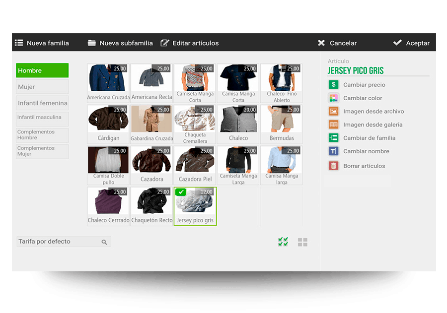 Administra tus productos por tallas y asígnales precios distintos a tu elección. Controla de forma fácil y eficaz el stock de tus productos por tallas mediante informes que te permitirán tener contabilizados los productos de forma independiente con tallas distintas.
